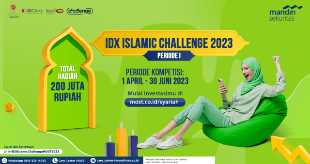 - Peserta merupakan investor yang telah membuka rekening syariah di Mandiri Sekuritas, baik yang telah menjadi nasabah maupun nasabah baru. Semua investor MOST Syariah otomatis menjadi peserta IDX Islamic Challenge 2023, bagi investor yang tidak bersedia mengikuti IDX Islamic Challenge dapat mengajukan non partisipasi/berhenti menjadi peserta dengan mengisi formulir berikut ini bit.ly/IDXIslamicChallenge2023