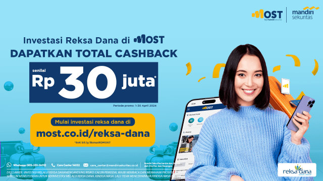 Dalam rangka persiapan menyambut libur panjang di bulan April, kami ingin mengajak sobat MOST untuk melakukan investasi reksa dana. Program ini terbuka untuk seluruh nasabah MOST yang baru melakukan pembukaan rekening maupun yang sudah aktif menjadi nasabah MOST. Lakukan pembelian reksa dana selama periode 1-30 April 2024 langsung dapatkan cashbacknya.